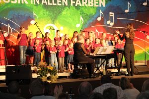 Den stimmungsvollen Auftakt gestalteten die „Ohrwürmer“, die unter der Leitung von Lara Felten das Publikum unter anderem mit dem Lied „Wie viel Farben hat die Welt“ verzauberten. Im Anschluss übernahm der Jugendchor die Bühne und trug die Stücke „Das Farbenspiel des Winds“, „A Million Dream“ und „Viva la Vida“ vor.
