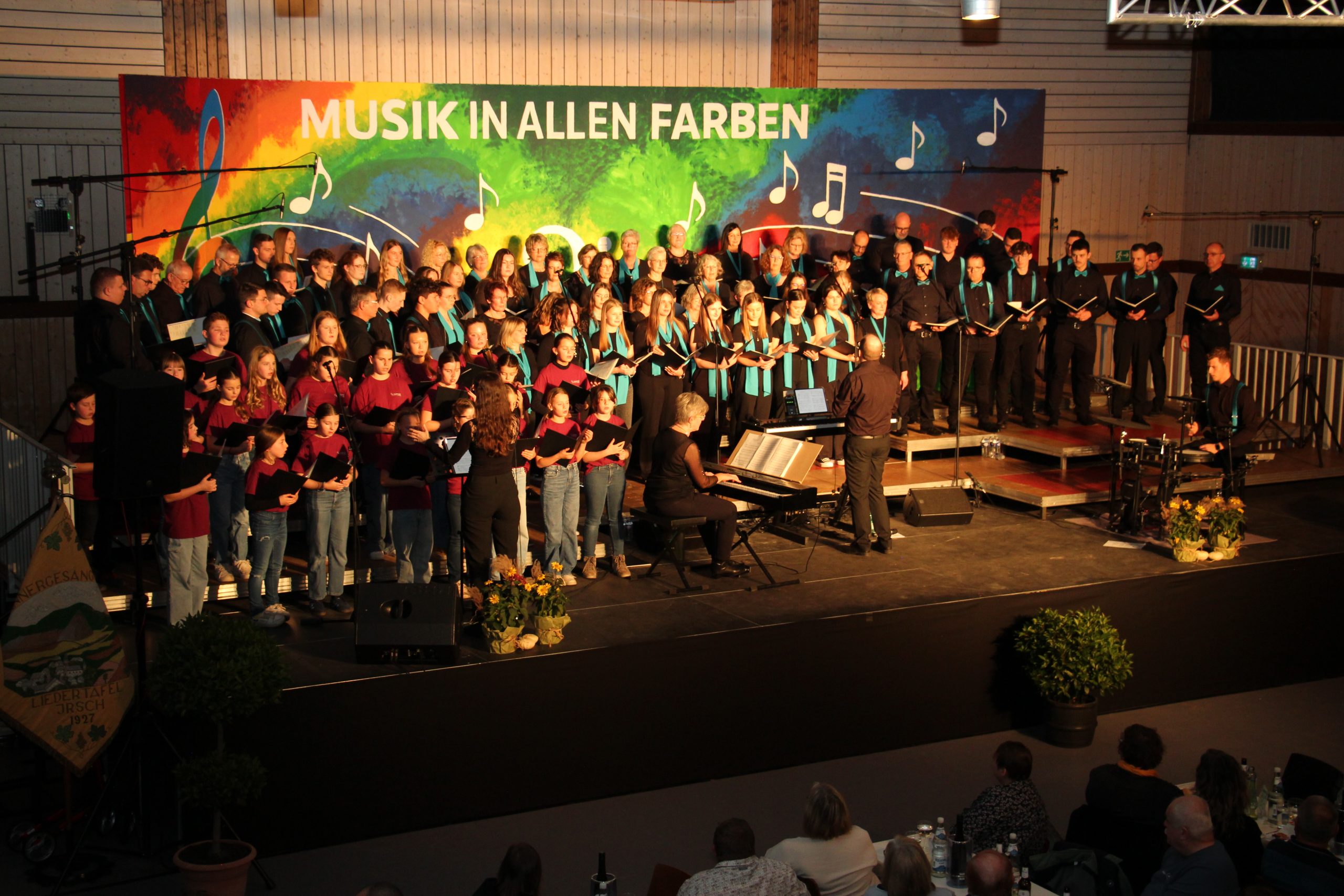 Unter dem farbenfrohen Motto „Musik in allen Farben“ veranstaltete die Liedertafel Irsch am 08.11.2025 ihr traditionelles chormusikalisches Herbstkonzert mit rund 450 Gästen in der ausverkauften Mehrzweckhalle in Irsch.