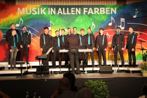 Mit viel Energie ging es im Programm weiter. Girlgroup und QGG sorgten mit „I’m so excited“ und „Thekenmädchen“ für ausgelassene Stimmung, bevor der Männerchor mit einem eigens von Chorleiter Frank Weilerswist arrangierten Seemanns-Medley „Wir Jungen in Blau“ glänzte.